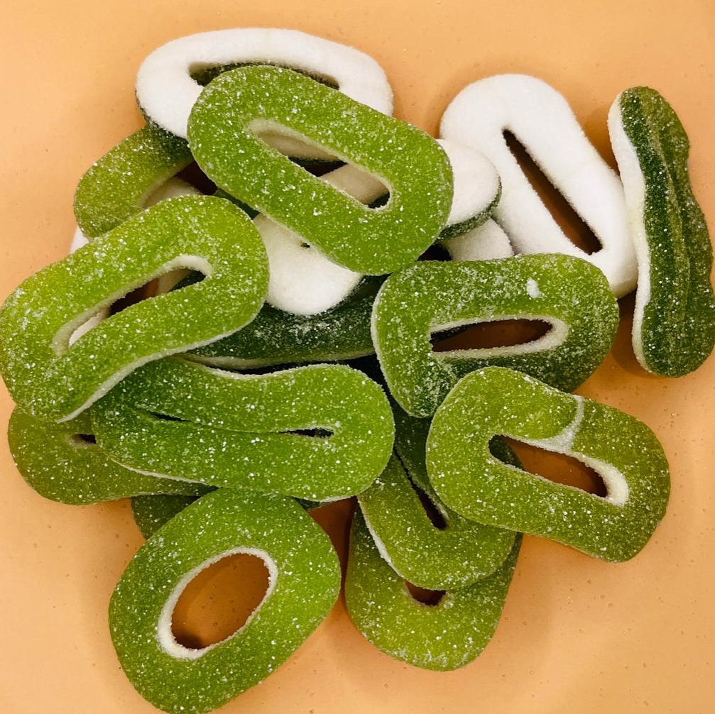 1 Tüte 200g Apfelringe sauer von Haribo.