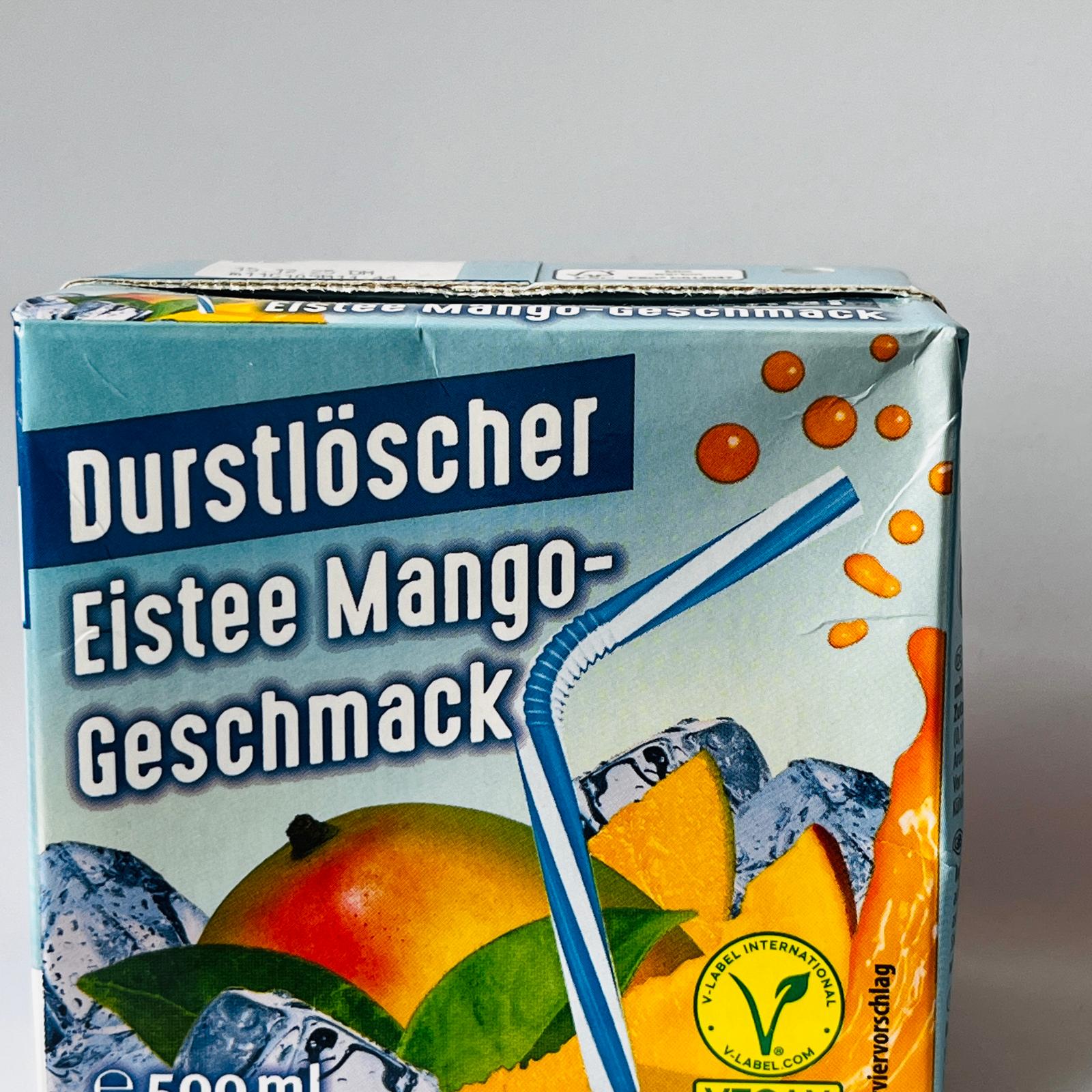 Zutaten: Wasser, Zucker, Mangomark (0,15%), Schwarztee-Extrakt (0,12%), Säuerungsmittel: