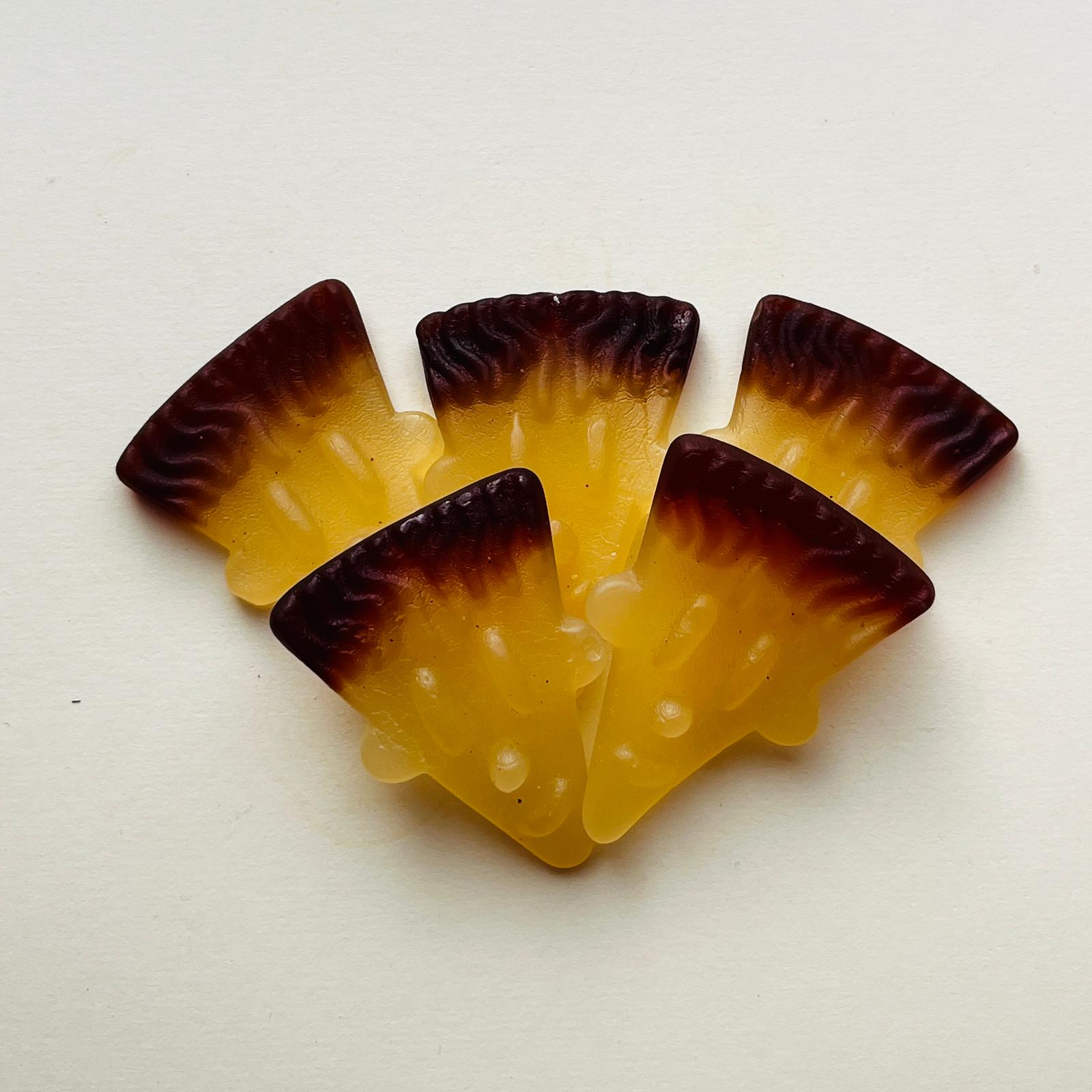 Zutaten: Glukosesirup, modifizierte Stärke, Zucker, Säuerungsmittel: E270; karamiliserter Zucker, pflanzliche Öle: Kokos, Palm; Aroma, Überzugsmittel: Bienenwachs.