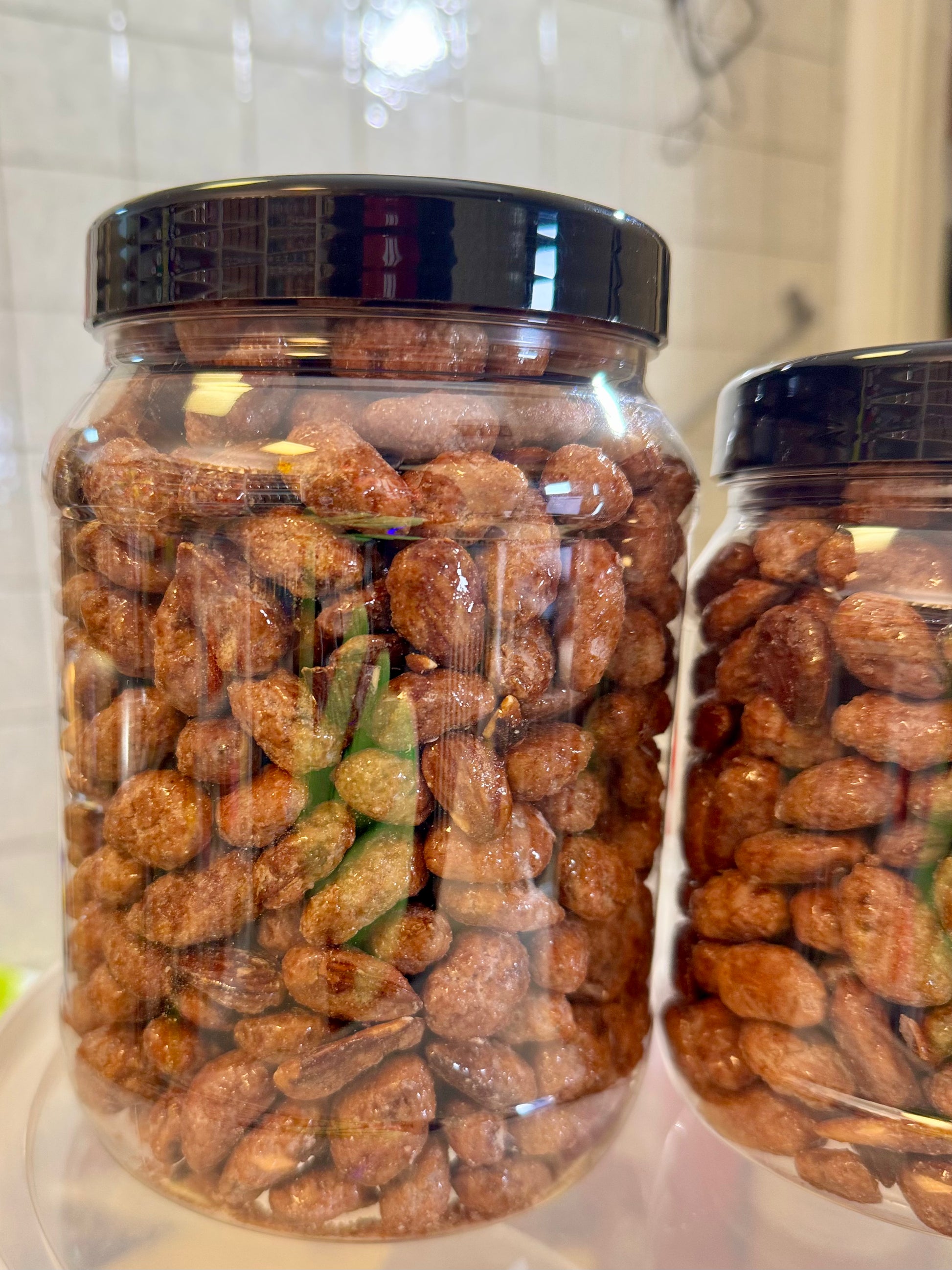 Unser beliebter Klassiker unter den Kirmesleckereien! Genieße den intensiven Geschmack unserer frisch im Kupferkessel gerösteten gebrannten Mandeln. 650g spanische Largueta Mandeln, vegan und frei von Farb- und Konservierungsstoffen, bieten dir einen unverfälschten, klassischen Genuss. Ideal als süßer Snack für zwischendurch.