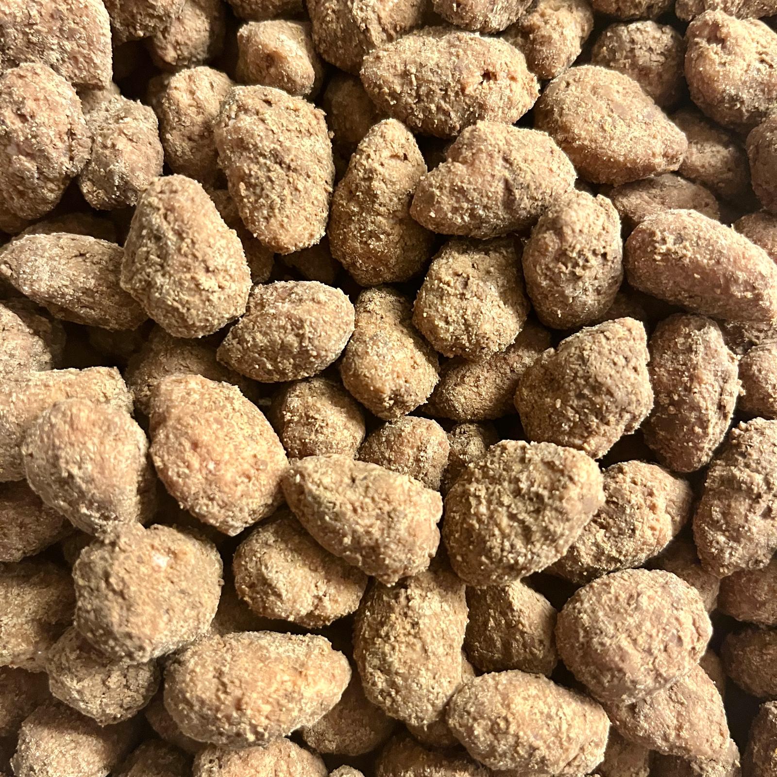 Die Mandeln werden traditionell von Hand in einem Kupferkessel auf einer offenen Feuerstelle gebrannt. Wir verarbeiten hierbei nur die hochwertigen Larguetta-Mandeln aus Spanien.
