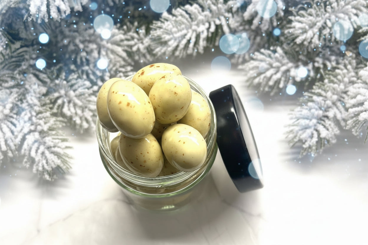 Zutaten: Zucker, MANDELN (20%), Kakaobutter, VOLLMILCHPULVER, Kakaomasse, MOLKEpulver, LACTOSE, Emulgator (SOJALECETHIN ), Karamellaroma, natürliches Vanillearoma, Glanzmittel E904, Glucosesirup, modifizierte Tapiokastärke, pflanzliches Öl (Kokos, Raps) in unterschiedlichen Anteilen Die Vollmilchokolade enthält mindestens 30% - und die weiße Schokolade mindestens 25% Kakao-Bestandteile