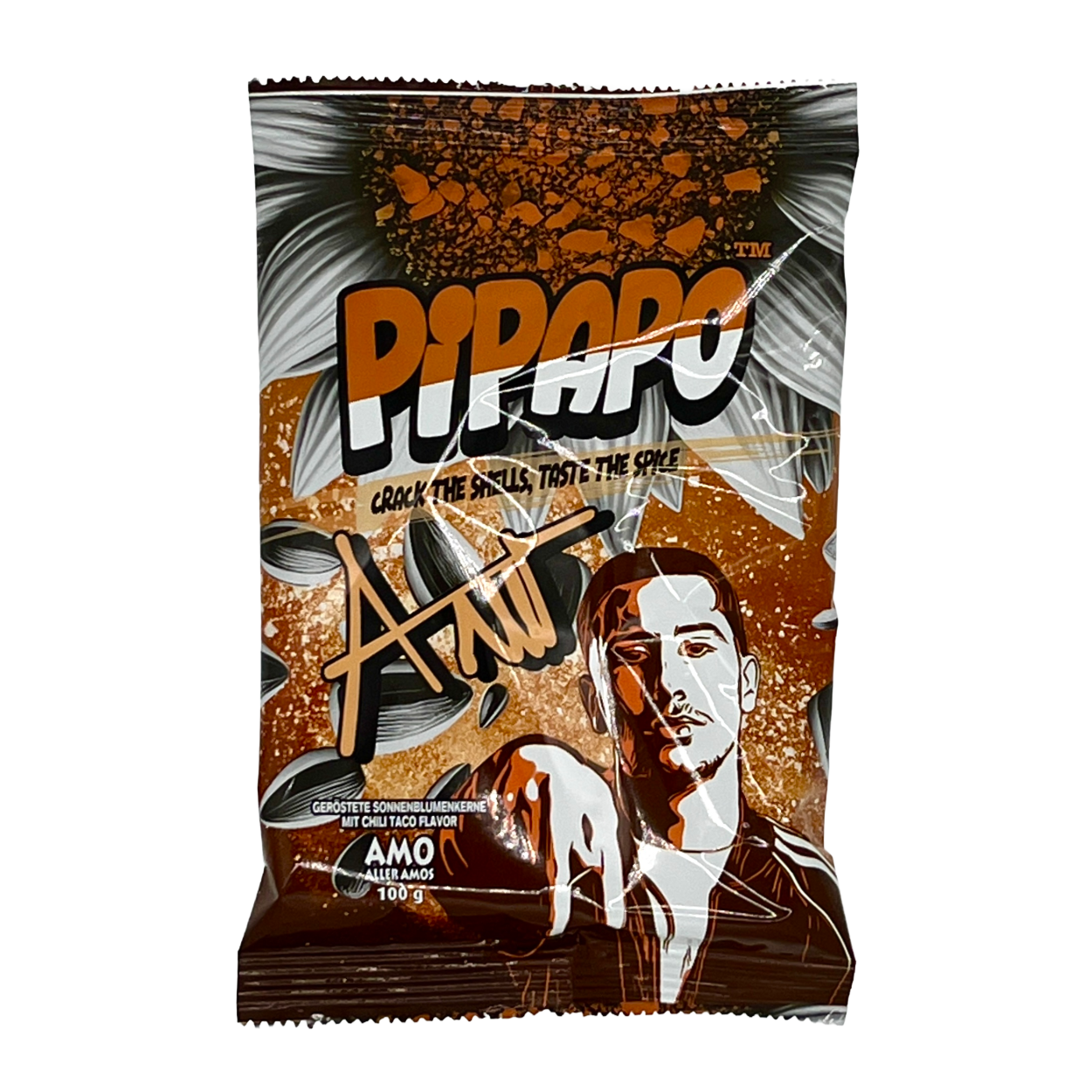 PIPAPO Amo hebt würzigen Snackgenuss auf ein neues Level: Knusprig geröstete Sonnenblumenkerne vereinen sich mit einer intensiven Chili-Taco-Gewürzmischung, die deinen Geschmackssinn ordentlich anregt. Die Kombination aus knackiger Textur und kräftiger Schärfe macht diesen Snack zur spannenden Alternative für alle, die herzhafte Knabbereien mit Biss lieben.