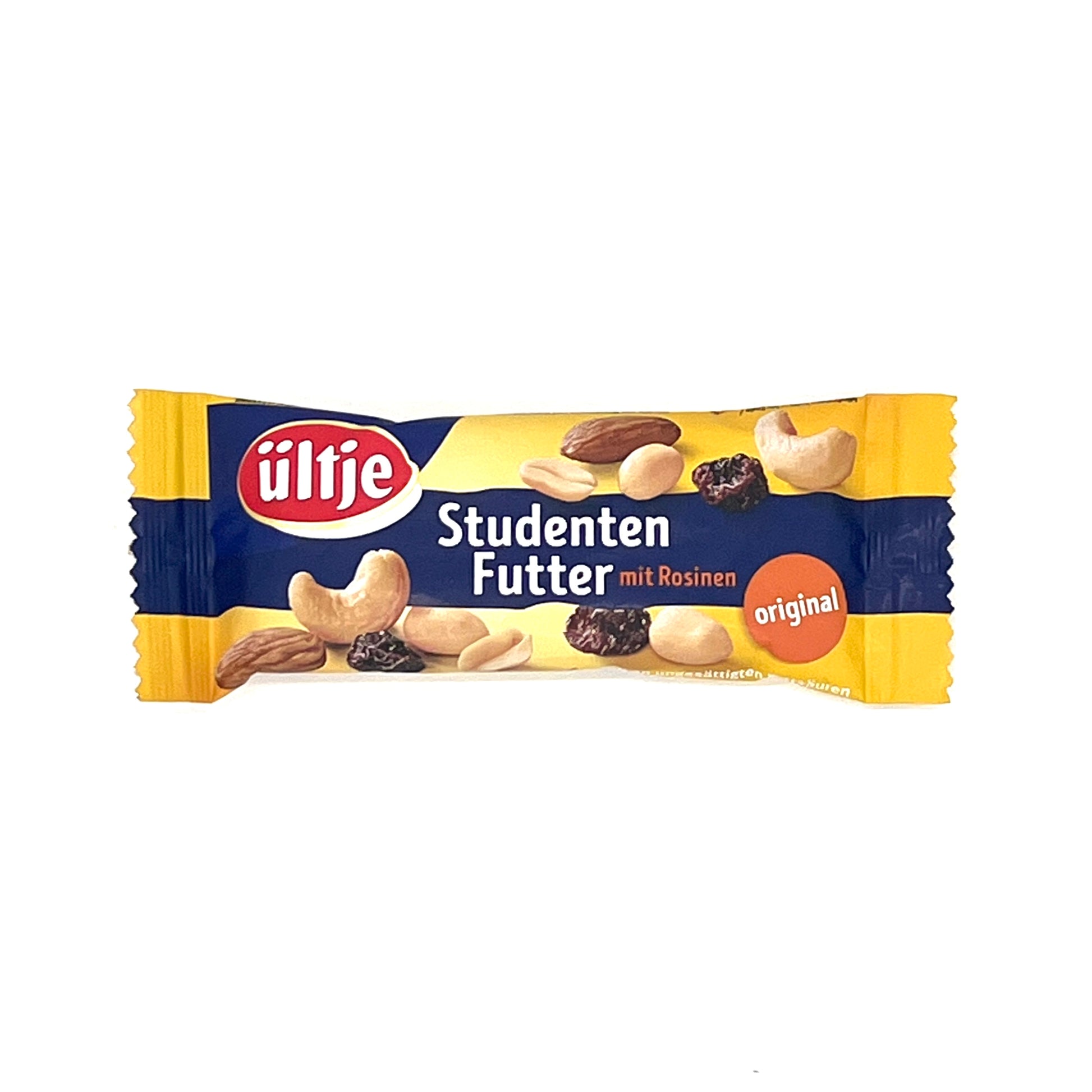 Zutaten: 30% Rosinen, geröstete ERDNUSSKERNE, geröstete CASHEWKERNE, geröstete MANDELN, Sonnenblumenöl. Anteile unterliegen abfülltechnischen Schwankungen. Enthält Spuren von anderen SCHALENFRÜCHTEN.
