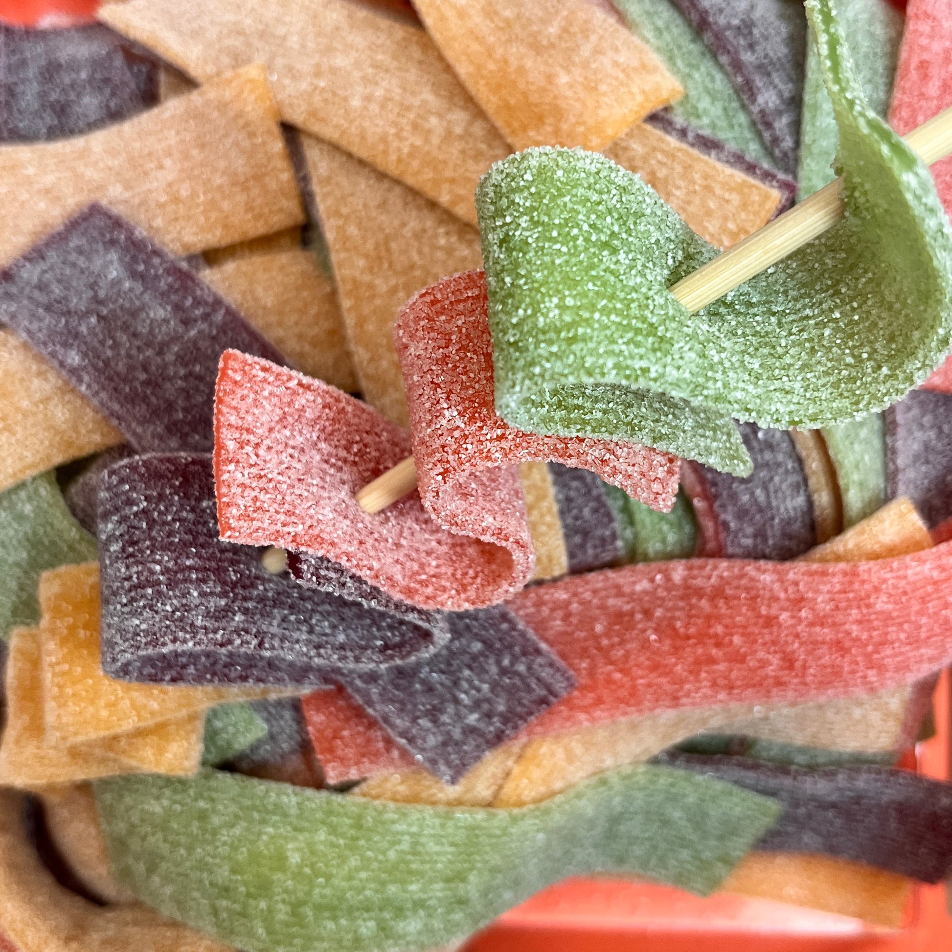 Saures Fruchtgummi – 4 Geschmacksrichtungen. Zutaten: Zucker, Glukose-Fruktose-Sirup, WEIZENMEHL, Säuerungsmittel: Äpfelsäure, Citronensäure; Dextrose, Palmöl, natürliche Aromen, Frucht- und Pflanzenkonzentrate: Apfel, Kürbis, Tomate, Rettich, Karotte, Hibiskus, Saflor, Spirulina, Süßkartoffel; Antioxidationsmittel: Ascorbinsäure, E 306.