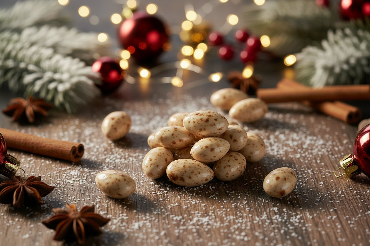 aus Schweden sind feine Mandelkerne dragiert mit weißer und Vollmilchschokolade mit Geschmack von Karamell.