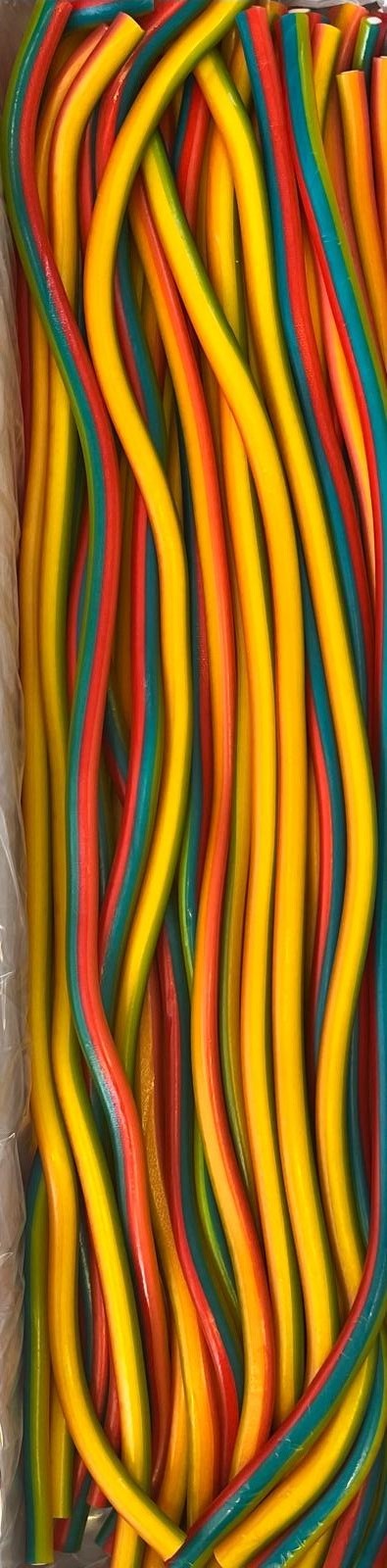 Zutaten: Zucker, Glukose und Fruktosesirup, Weizenmehl (Gluten), Maisstärke, Gelatine, Fett pflanzlich (Palm), Öl pflanzlich (Palm, Kokusnuss), Säuerungsmittel: Milchsäure, Apfelsäure, Citronensäure; Aroma, Säureregulator: Natriumlactat, Natriumcitrat; Salz, Emulgator: Mono- und Diglyceride von Speisefettsäuren; Feuchthaltemittel: Glycerin; Farbstoff: Tartrazin**, Gelboraneg S**, Allurarot AC**, Brillantblau FCF**. **Kann Aktivität und Aufmerksamkeit bei Kindern beeinträchtigen. Kann Spuren von Soja und Senf enthalten.